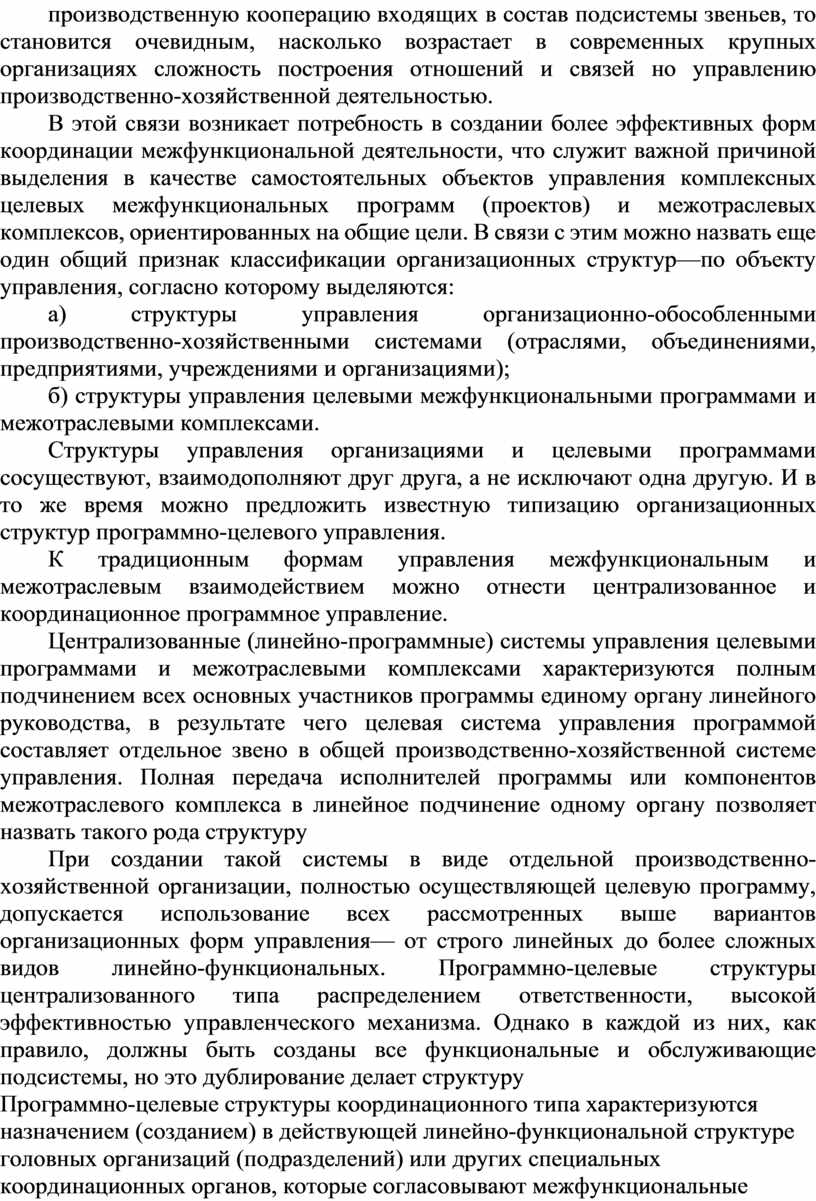 б) структуры управления целевыми межфункциональными программами и межотраслевыми комплексами.
