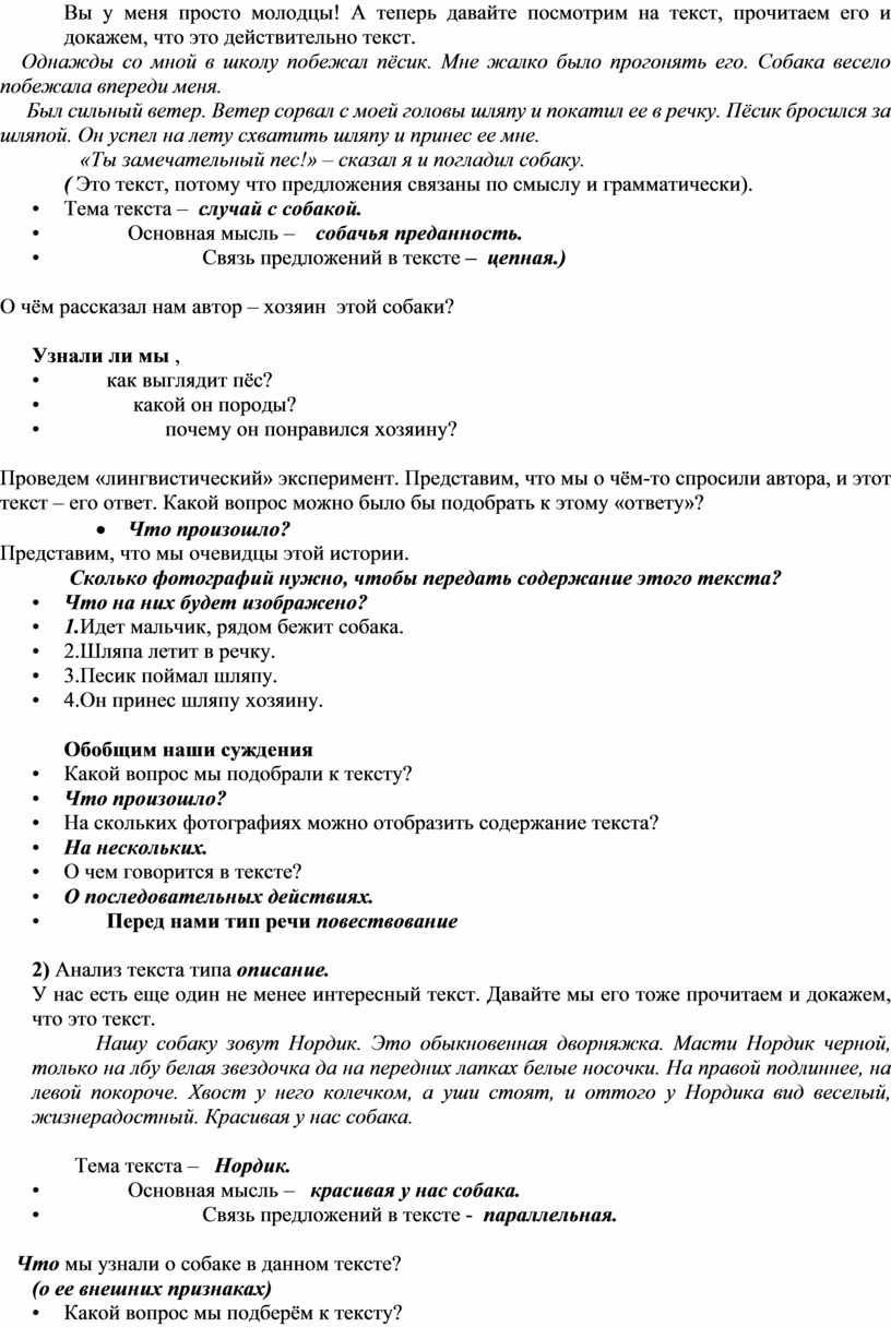 1)Анализ текста типа повествование и выявление его отличительных признаков.