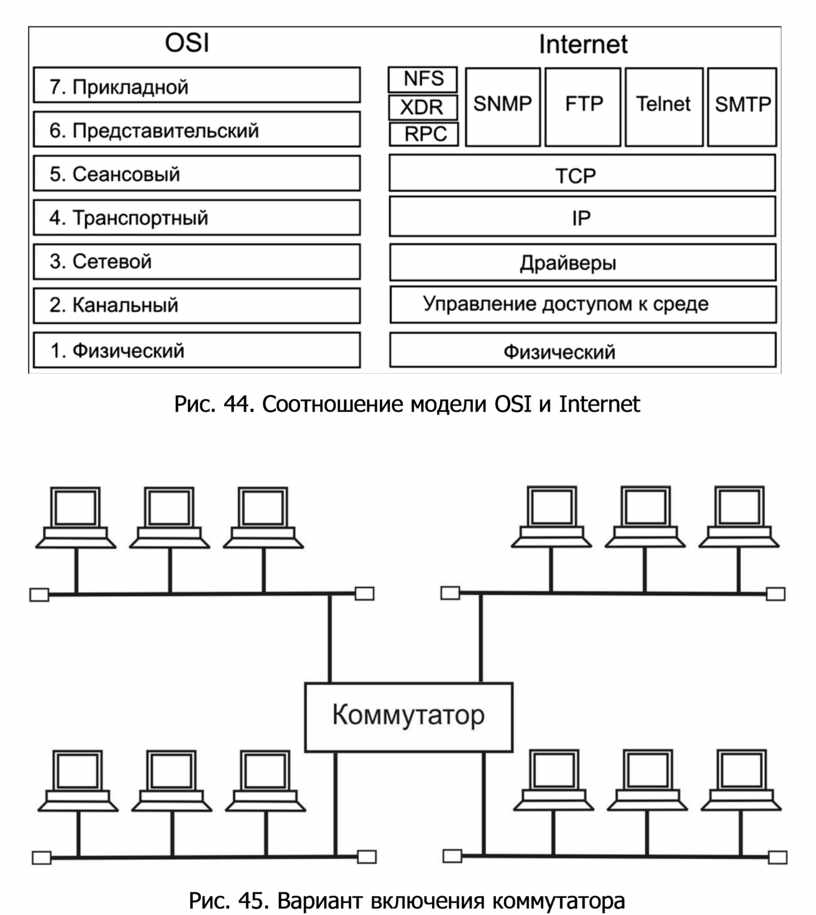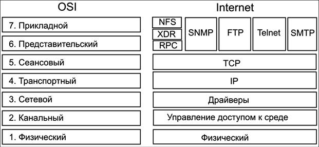 Рис. 44. Соотношение модели OSI и Internet