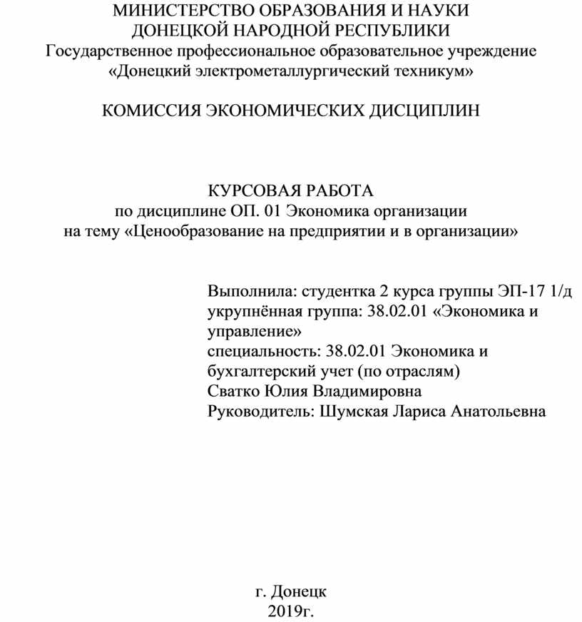 Выполнила: студентка 2 курса группы ЭП-17 1/д укрупнённая группа: 38.02.01 «Экономика и управление» специальность: 38.02.01 Экономика и бухгалтерский учет (по отраслям) Сватко Юлия Владимировна Руководитель: Шумская Лариса Анатольевна |