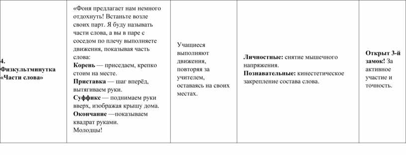 4. Физкультминутка «Части слова» |