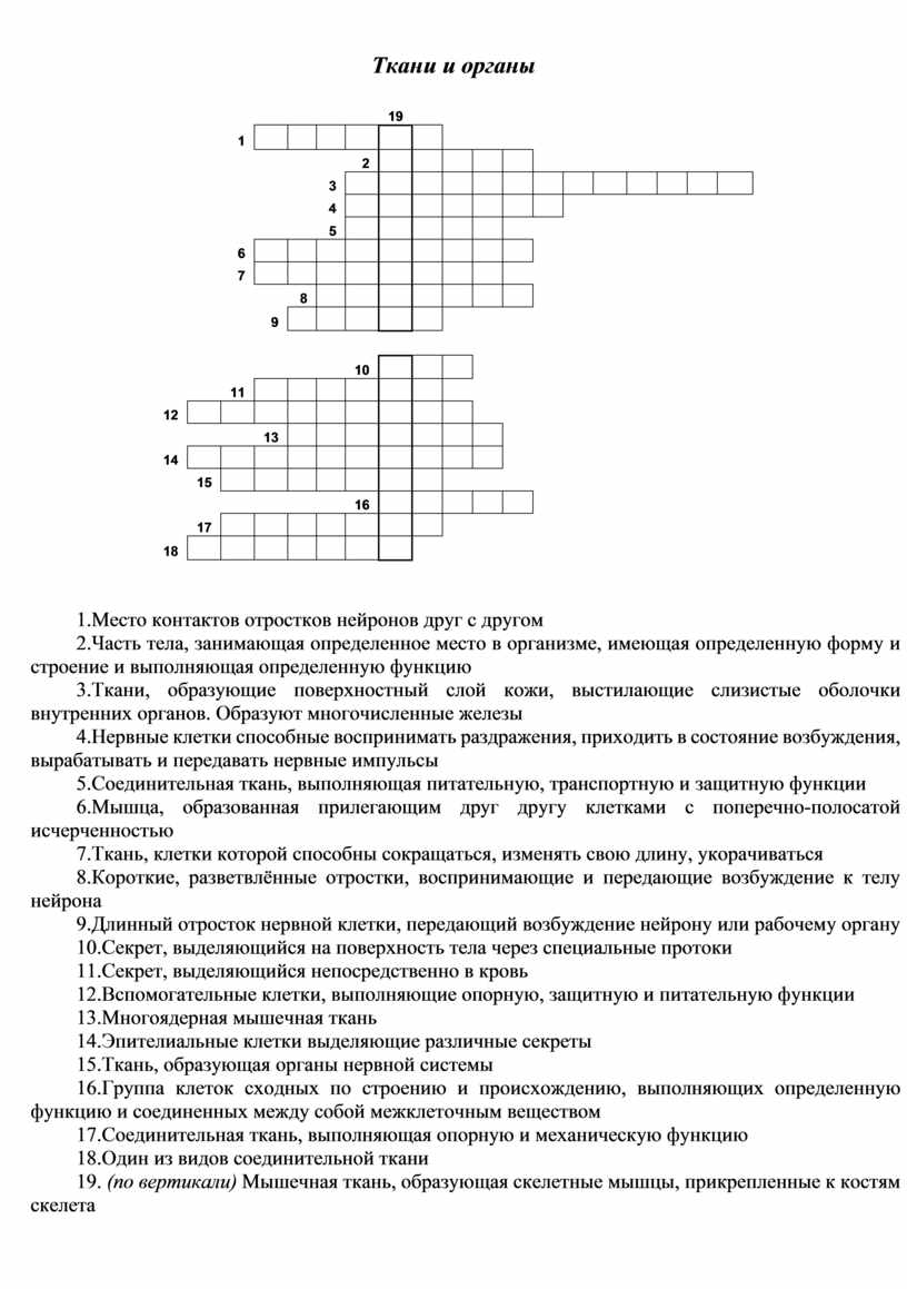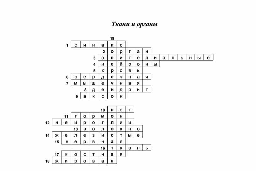 19. (по вертикали) Мышечная ткань, образующая скелетные мышцы, прикрепленные к костям скелета