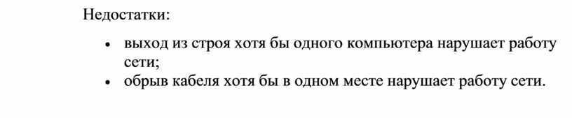 · обрыв кабеля хотя бы в одном месте нарушает работу сети.