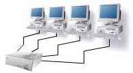 Топология «общая шина» предполагает использование одного кабеля, к которому подключаются все компьютеры. Информация по нему передается компьютерами поочередно (рис. 7.4).