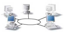 При кольцевой топологии данные передаются от одного компьютера другому по эстафете (рис. 7.5). Если некоторый компьютер получает данные, предназначенные не ему, он передает их дальше по кольцу. Адресат предназначенные ему данные никуда не передает.