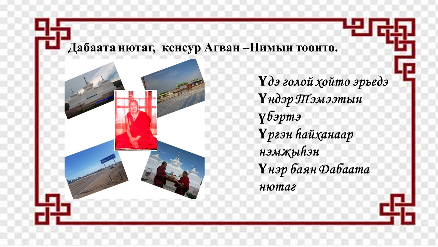 Дабаата нютаг, кенсур Агван –Нимын тоонто.