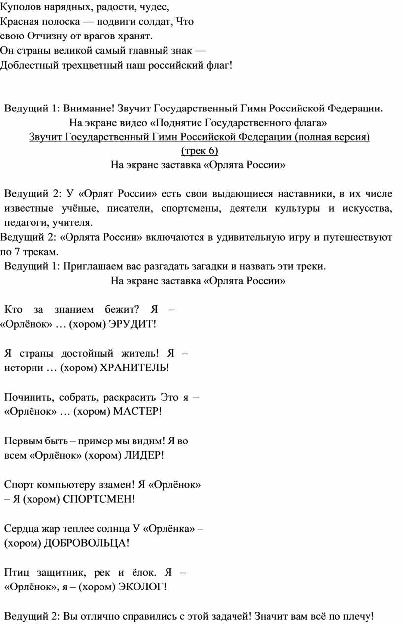 Ведущий 2: Вы - участники торжественной церемонии посвящения в Орлята России.