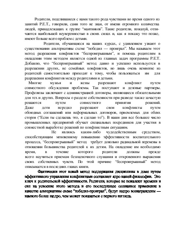 метод разрешения конфликтов “беспроигрышным”, и помощь родителям в