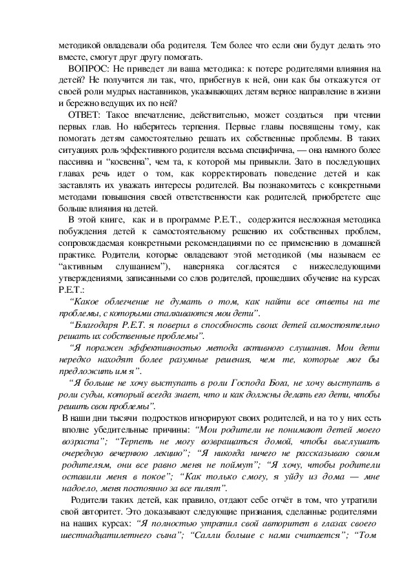 Effectiveness Training) поможет большинству родителей более эффективно