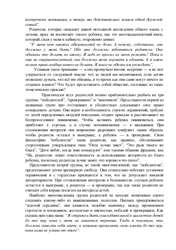 стать исключением, а не правилом, если родители овладеют новыми методами