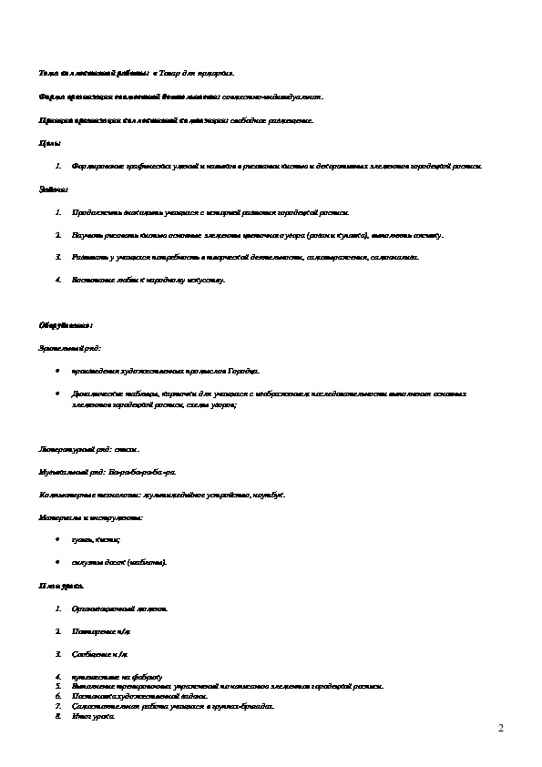 1. Продолжить знакомить учащихся с историей развития городецкой росписи.