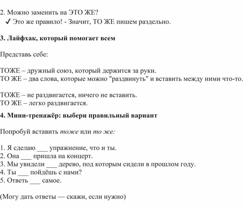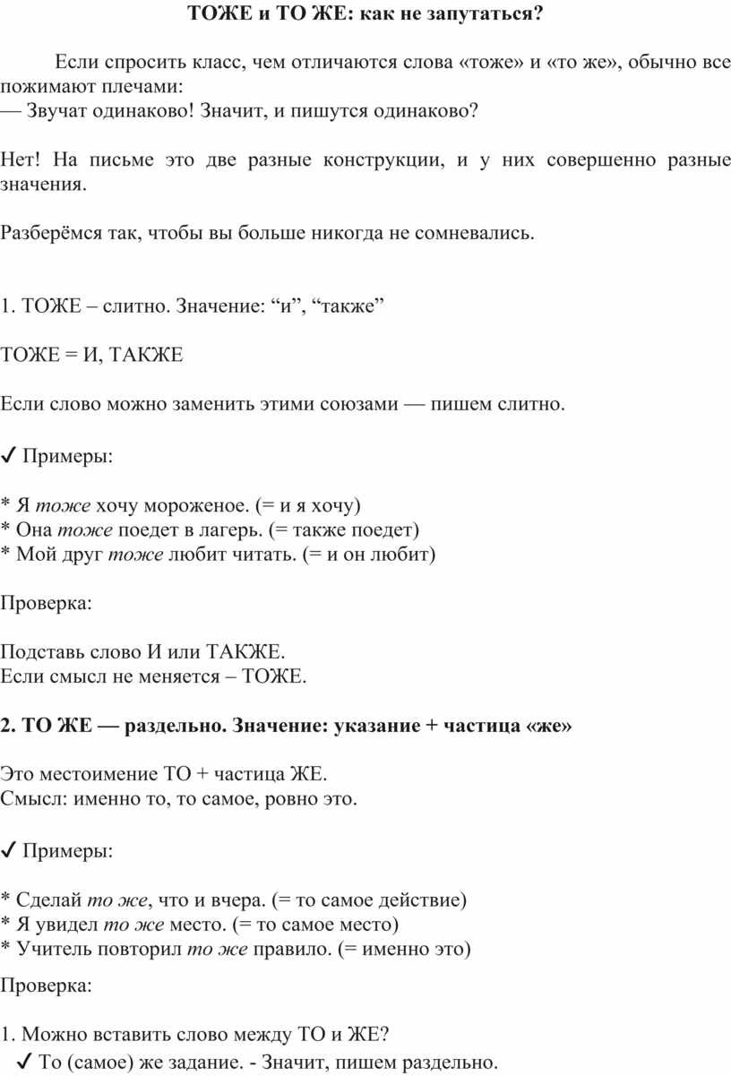 ТОЖЕ и ТО ЖЕ: как не запутаться?