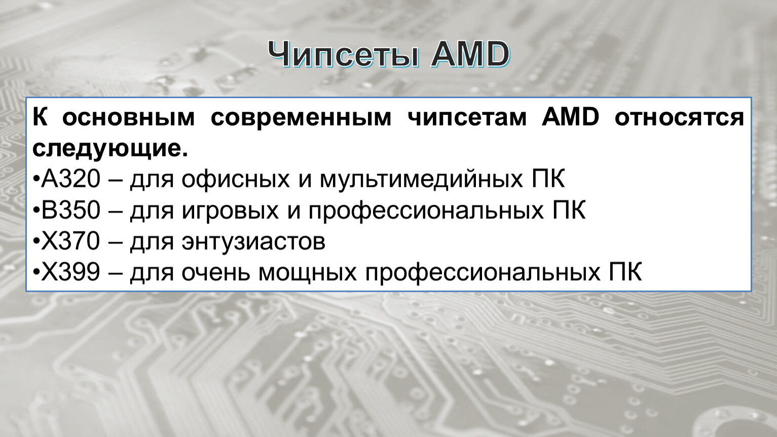 У каждой материнской платы есть свой собственный процессор, который управляет всеми подключаемыми к ней устройствами и называется чипсетом.