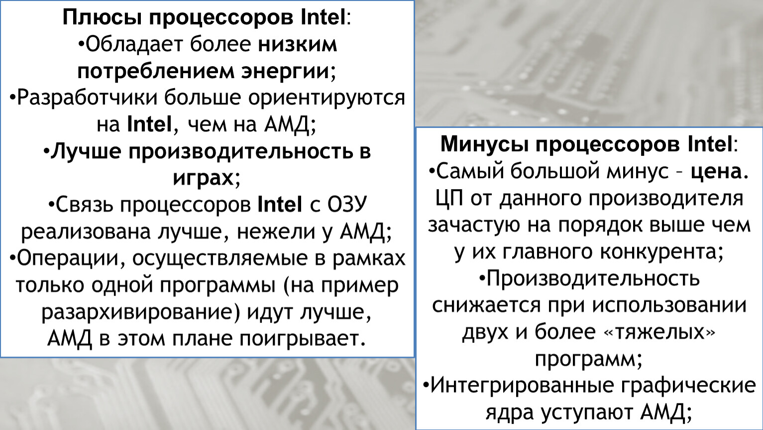 Самый большой минус – цена. ЦП от данного производителя зачастую на порядок выше чем у их главного конкурента;