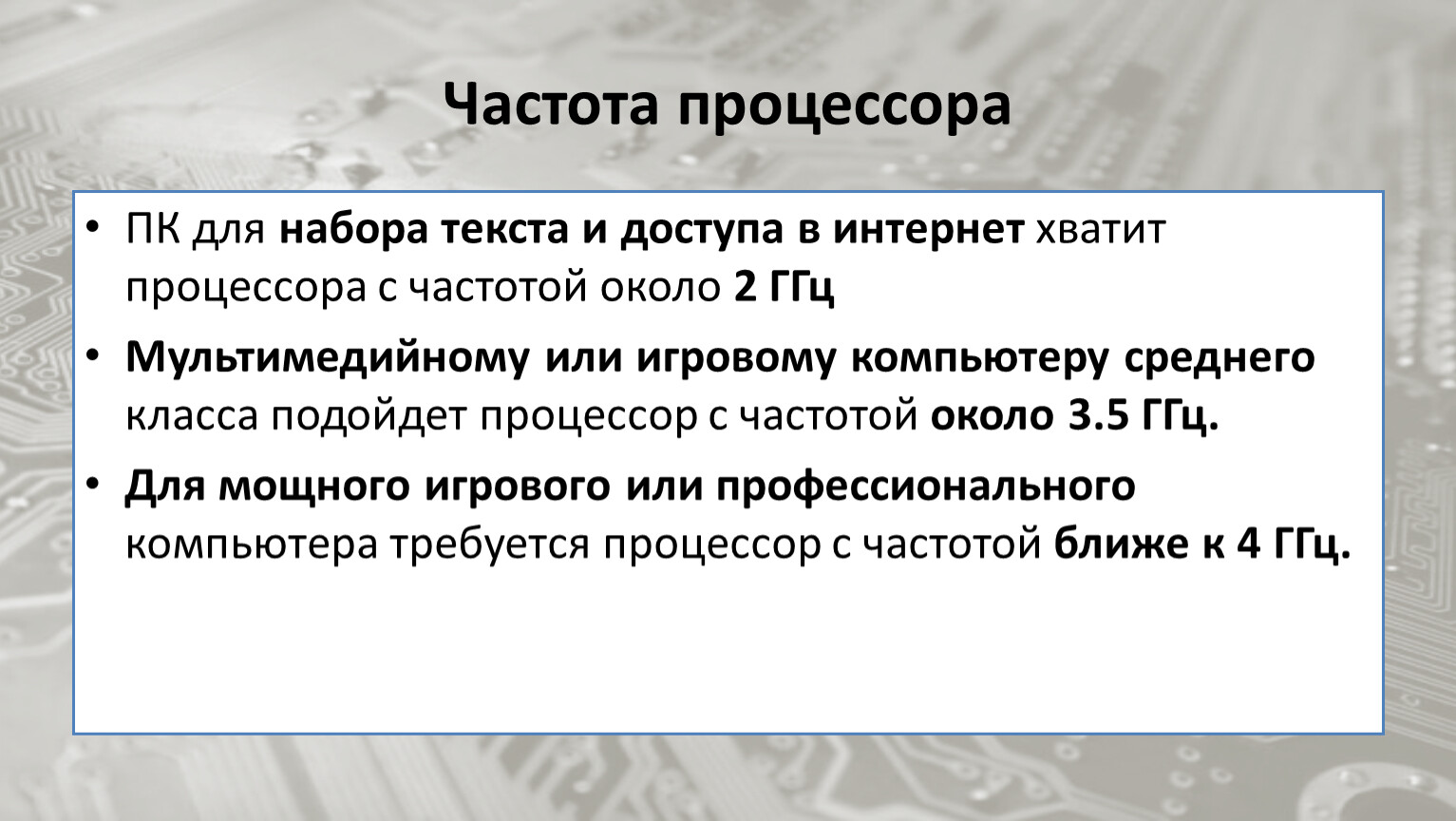 Для мощного игрового или профессионального компьютера требуется процессор с частотой ближе к 4 ГГц.