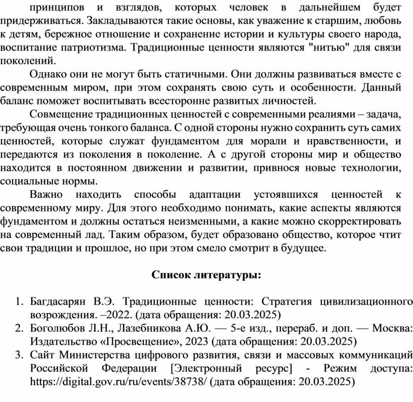 1. Багдасарян В.Э. Традиционные ценности: Стратегия цивилизационного возрождения. –2022. (дата обращения: 20.03.2025)