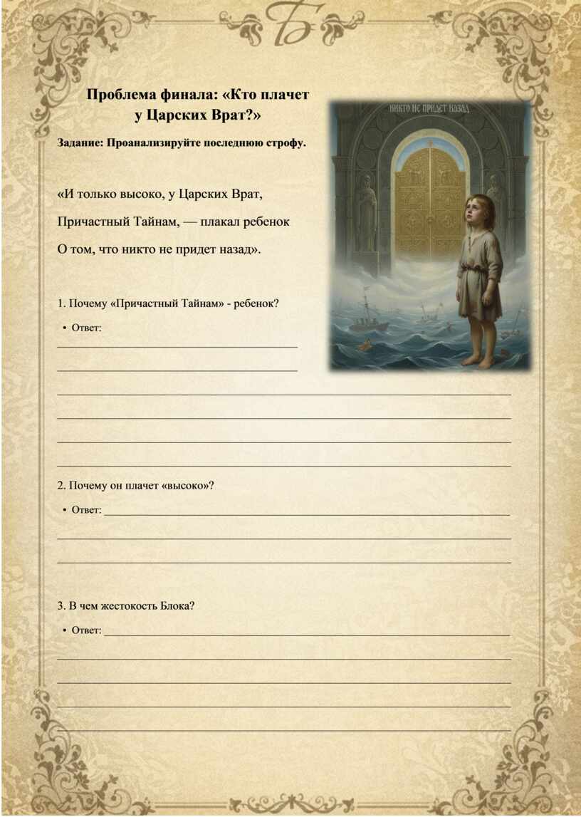 финала: «Кто плачет у Царских Врат?»