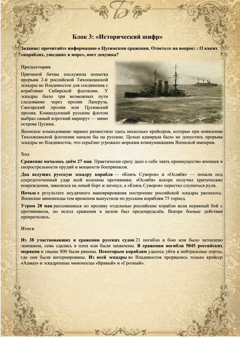 Задание: прочитайте информацию о Цусимском