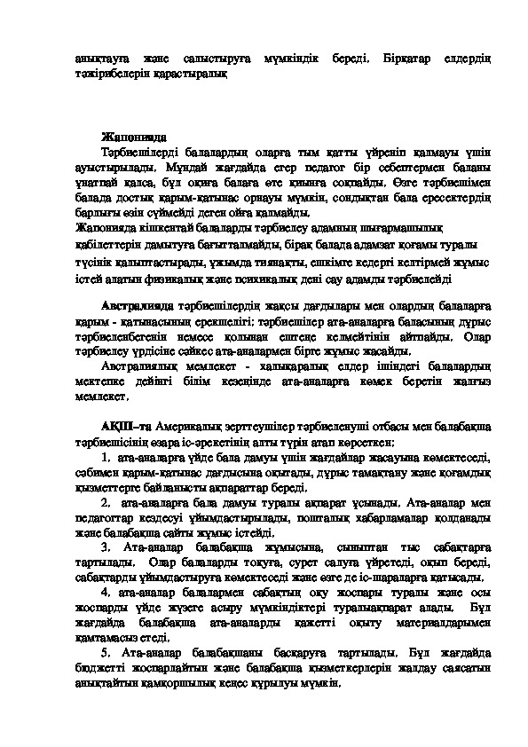 онда ата – аналар өзіне бала тәрбиесіне қажетті ақпаратты, сондай – ақ