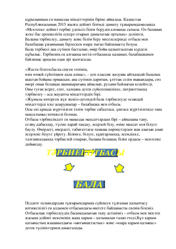 тәрбиесіздігінен азады. Балаға дұрыс тәрбие беру қоғамның болашақ