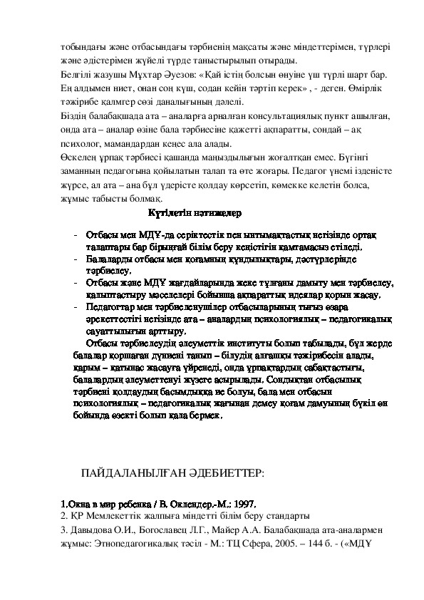 3. Давыдова О.И., Богославец Л.Г., Майер А.А. Балабақшада атааналармен