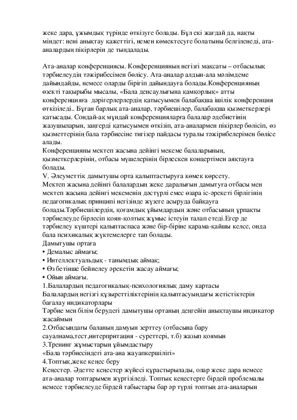 - Отбасы және МДҰ жағдайларында жеке тұлғаны дамыту мен тәрбиелеу,