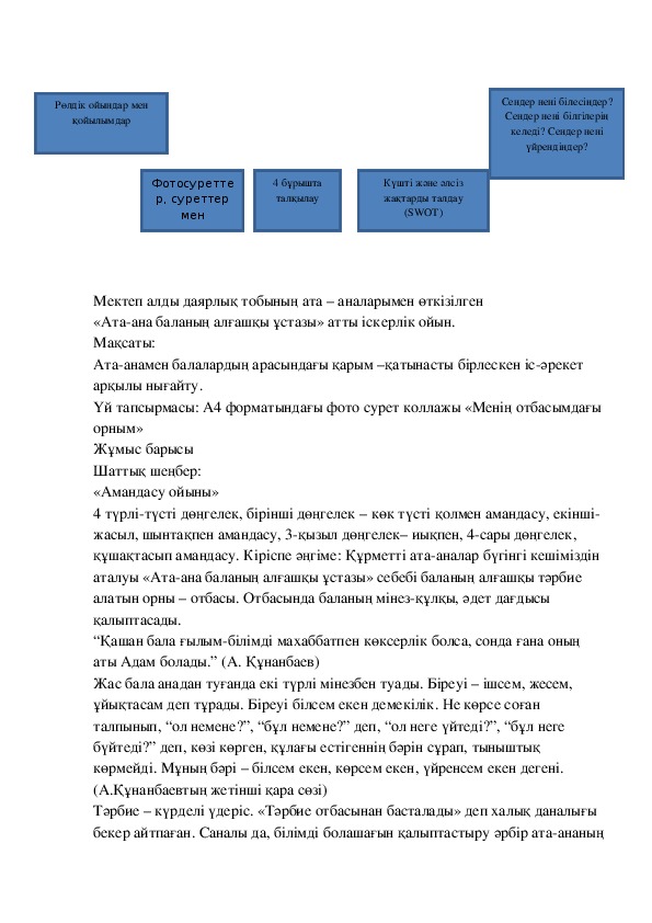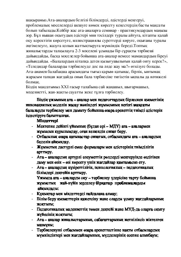 4. атааналар балалармен сабақтың оқу жоспары туралы және осы