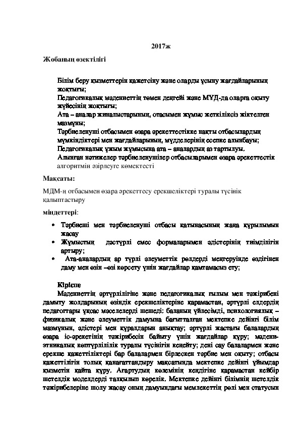 МДМң отбасымен өзара әрекеттесу ерекшеліктері туралы түсінік