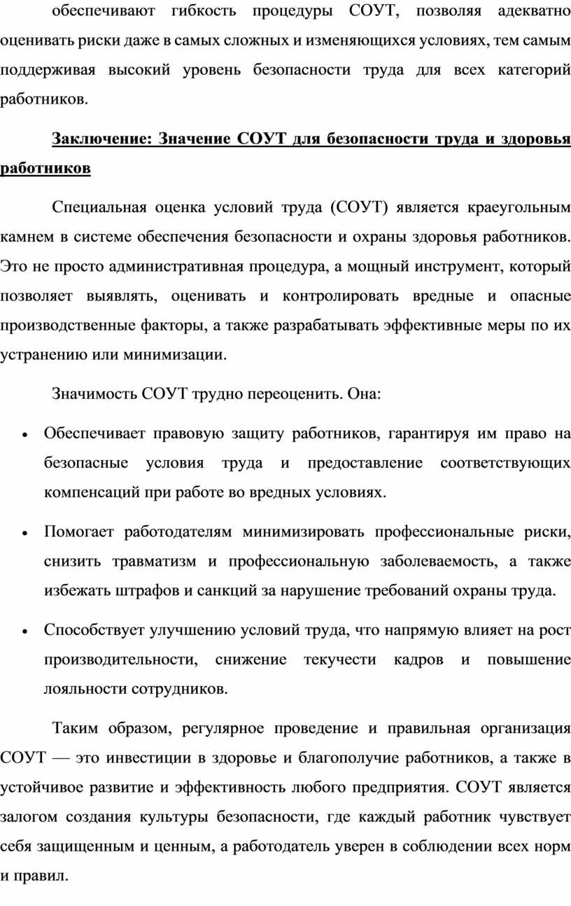 Заключение: Значение СОУТ для безопасности труда и здоровья работников