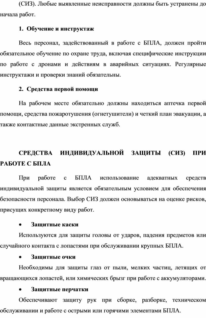 Весь персонал, задействованный в работе с БПЛА, должен пройти обязательное обучение по охране труда, включая специфические инструкции по работе с дронами и действиям в аварийных ситуациях. Регулярные инструктажи и проверки знаний обязательны.