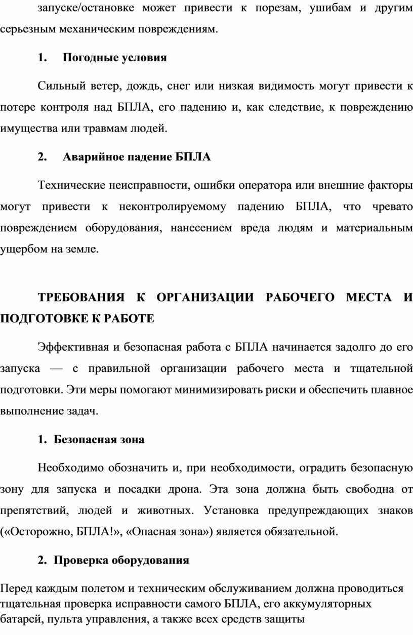 ОРГАНИЗАЦИОННЫЕ МЕРЫ БЕЗОПАСНОСТИ ПРИ ВЫПОЛНЕНИИ РАБОТ С БПЛА