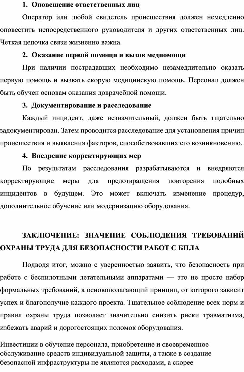 ЗАКЛЮЧЕНИЕ: ЗНАЧЕНИЕ СОБЛЮДЕНИЯ ТРЕБОВАНИЙ ОХРАНЫ ТРУДА ДЛЯ БЕЗОПАСНОСТИ РАБОТ С БПЛА
