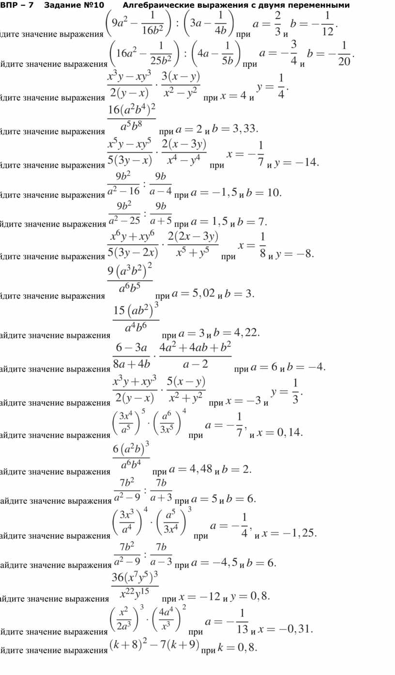 ВПР – 7 Задание №10 Алгебраические выражения с двумя переменными