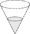 190 № 318145 В сосуде, имеющем форму конуса, уровень жидкости достигает ½ высоты. Объём жидкости равен 70 мл. Сколько миллилитров жидкости нужно долить, чтобы полностью наполнить сосуд?