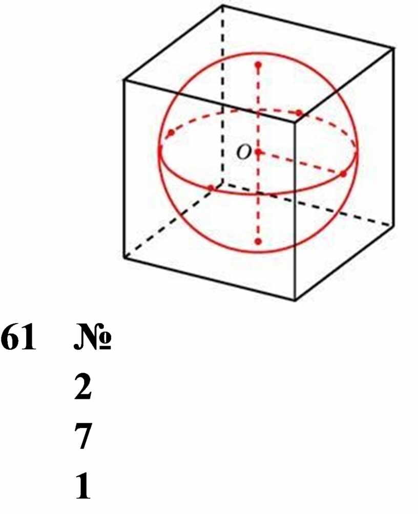 66 № 27105 Объем прямоугольного параллелепипеда, описанного около сферы, равен 216. Найдите радиус сферы.