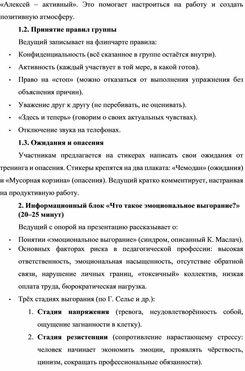 1. Познакомить участников с феноменом эмоционального выгорания, его стадиями и симптомами.
