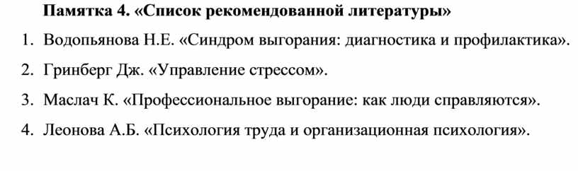 3. Маслач К. «Профессиональное выгорание: как люди справляются».