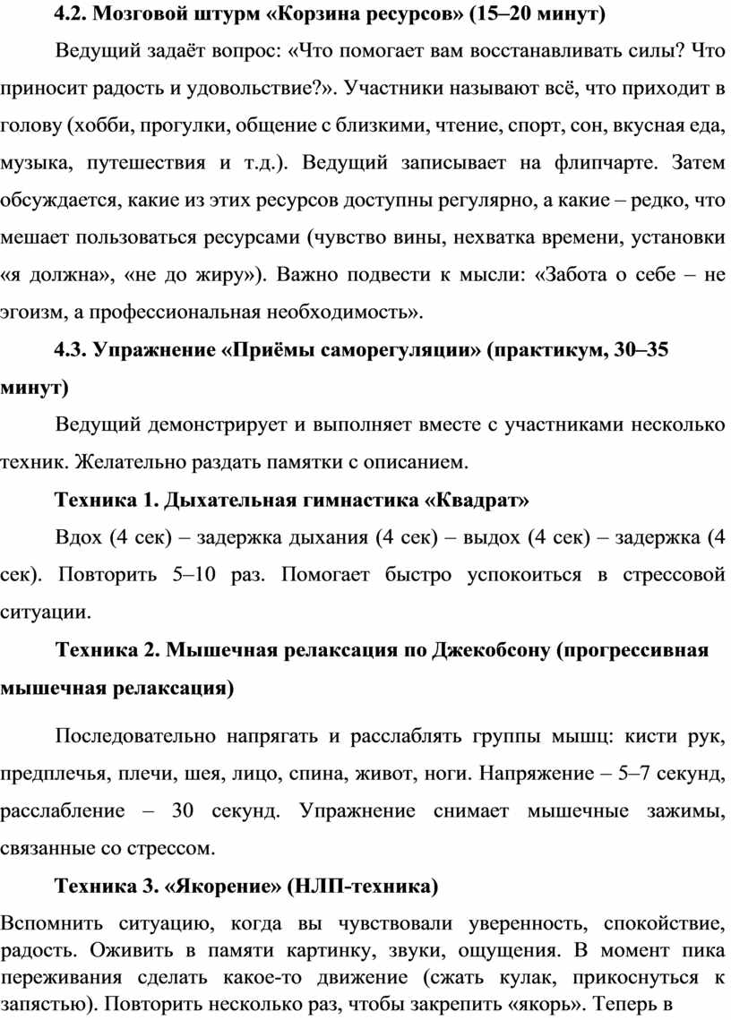 4.3. Упражнение «Приёмы саморегуляции» (практикум, 30–35