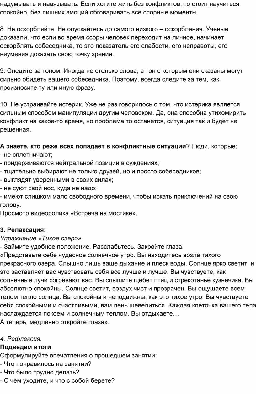 методам разрешения конфликтных, сложных эмоциональных ситуаций;