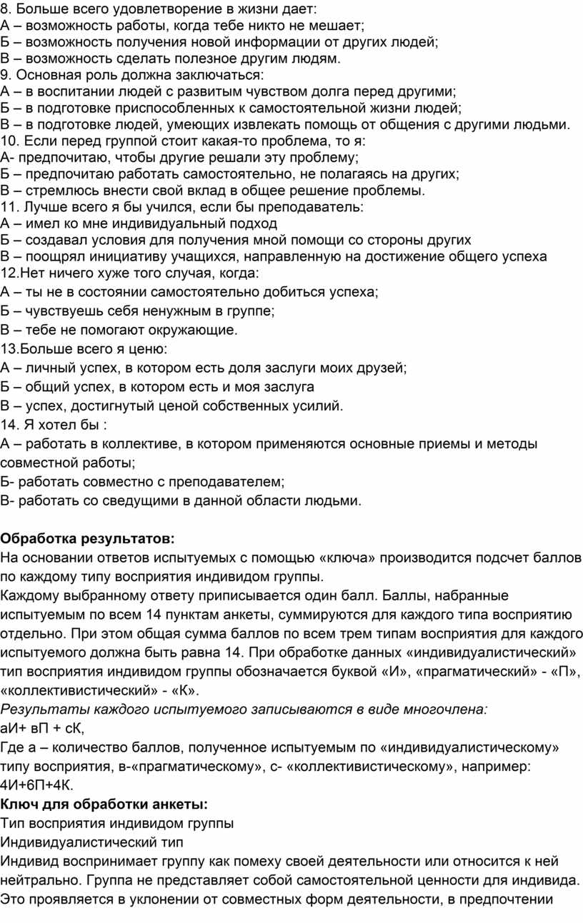 возможных «типа» восприятия индивидом группы. При этом в качестве показателя