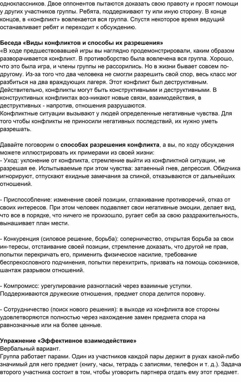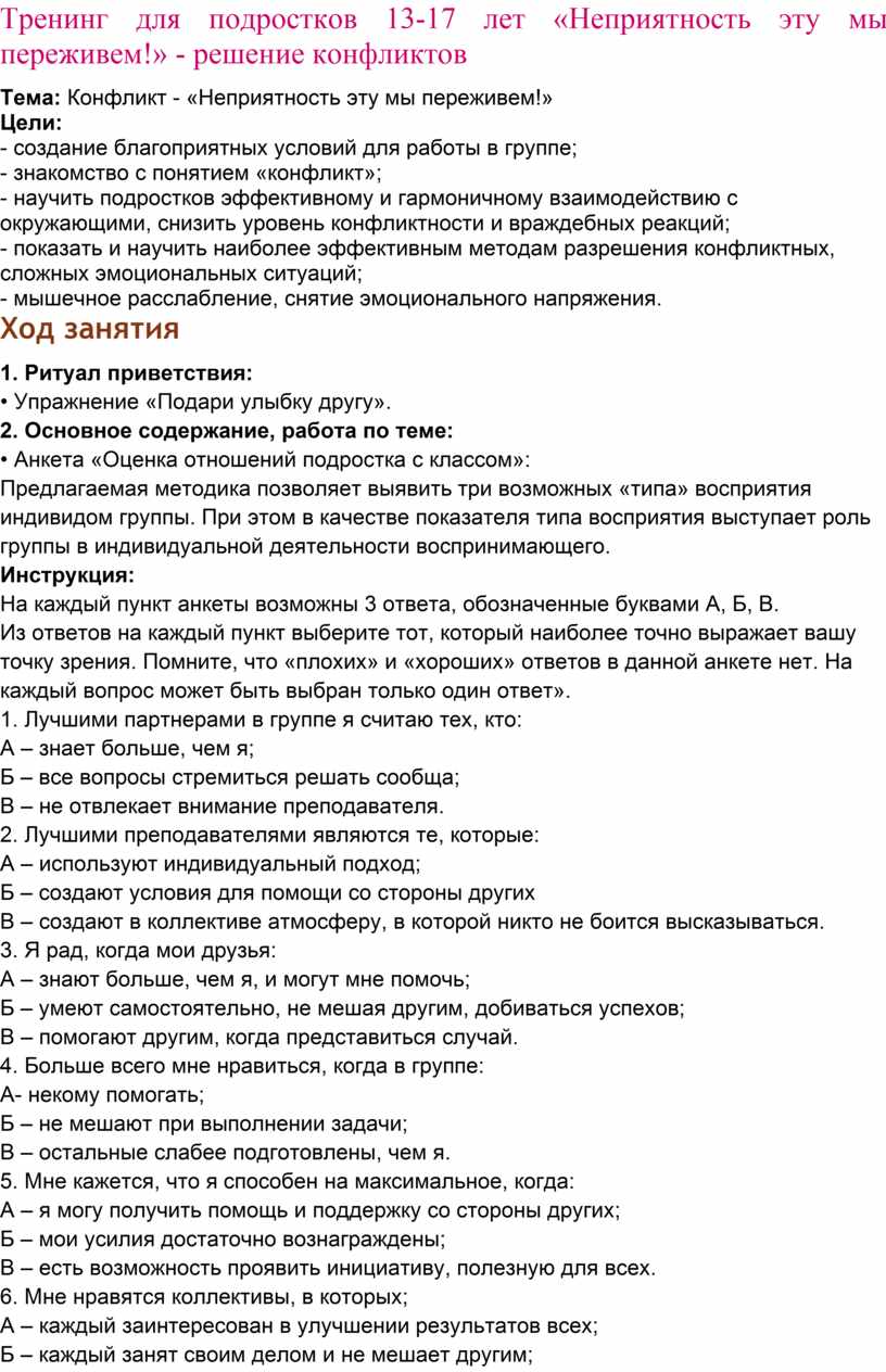 Тренинг для подростков 13-17 лет «Неприятность эту мы переживем!» - решение конфликтов