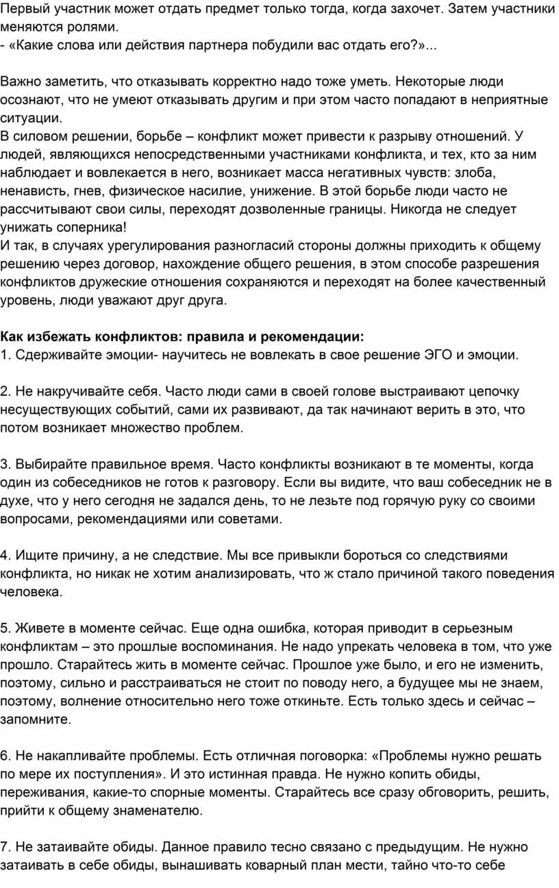 конфликтов, то стоит научиться спокойно, без лишних эмоций обговаривать все