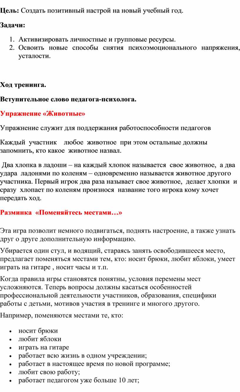 Ход тренинга.