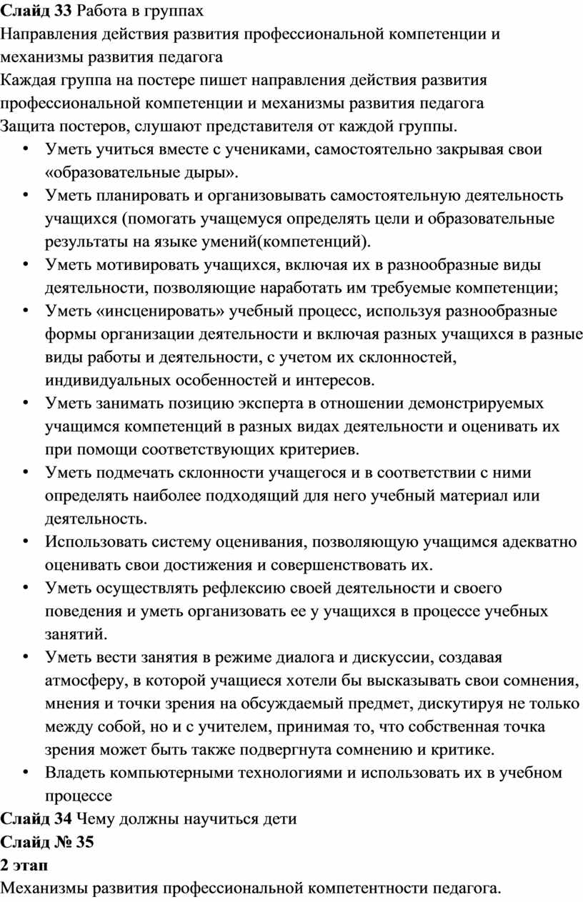 Механизмы развития профессиональной компетентности педагога.