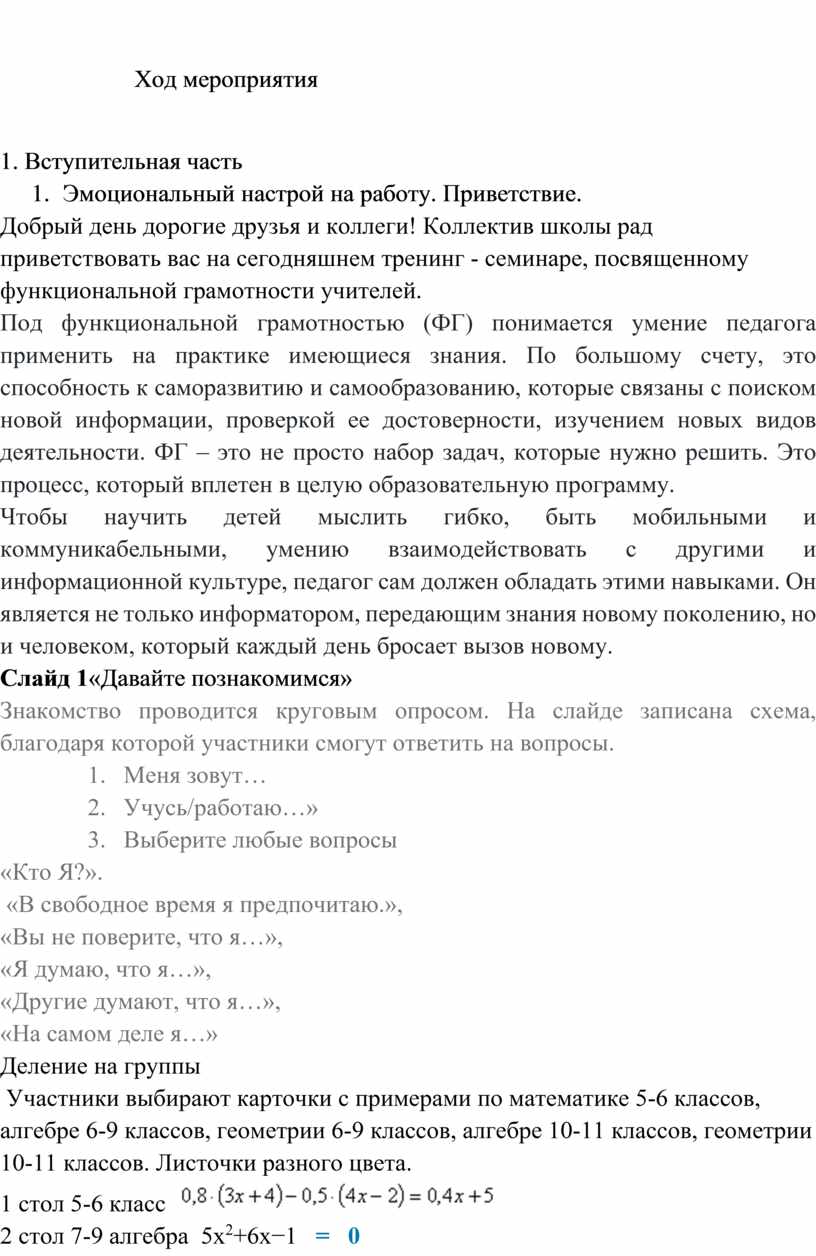 Тема занятия: «Функциональная грамотность учителя: актуальность, проблемы, перспективы»