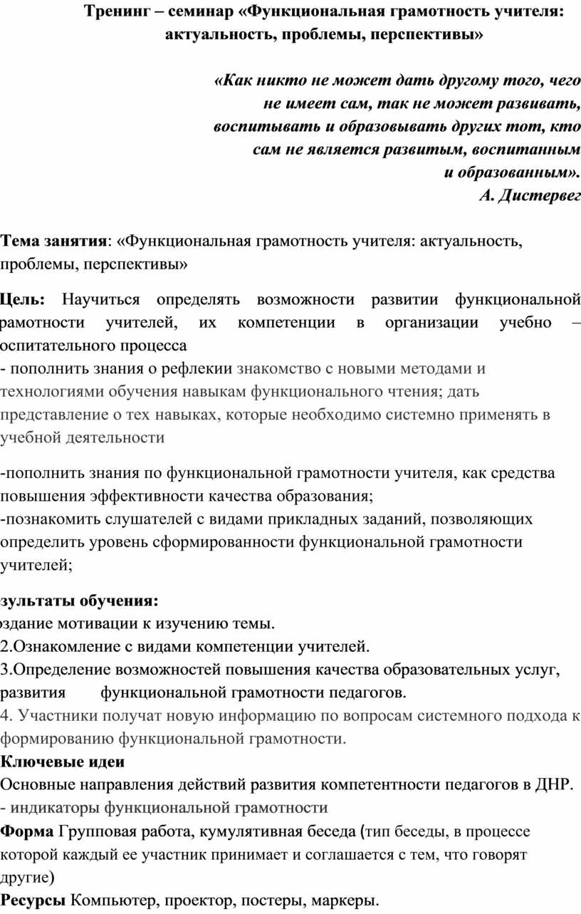 Тренинг – семинар «Функциональная грамотность учителя: актуальность, проблемы, перспективы»