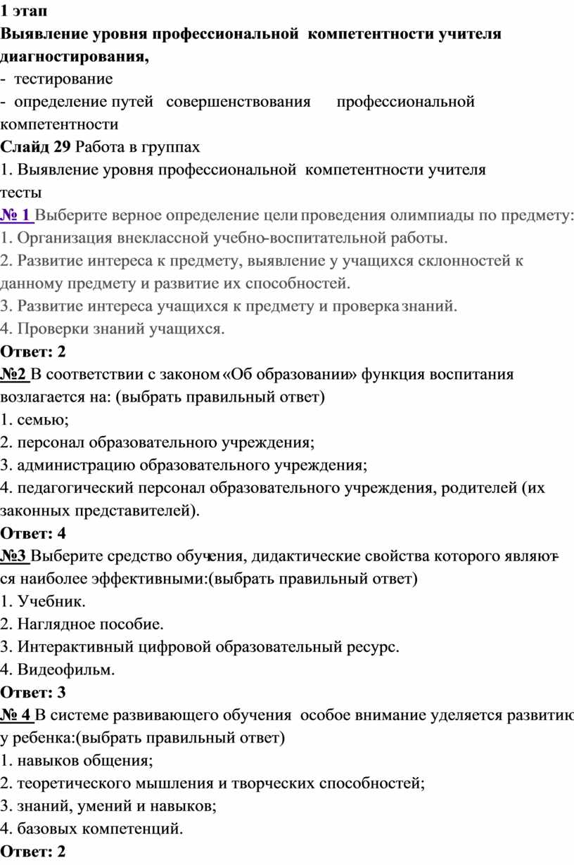 1. Выявление уровня профессиональной компетентности учителя
