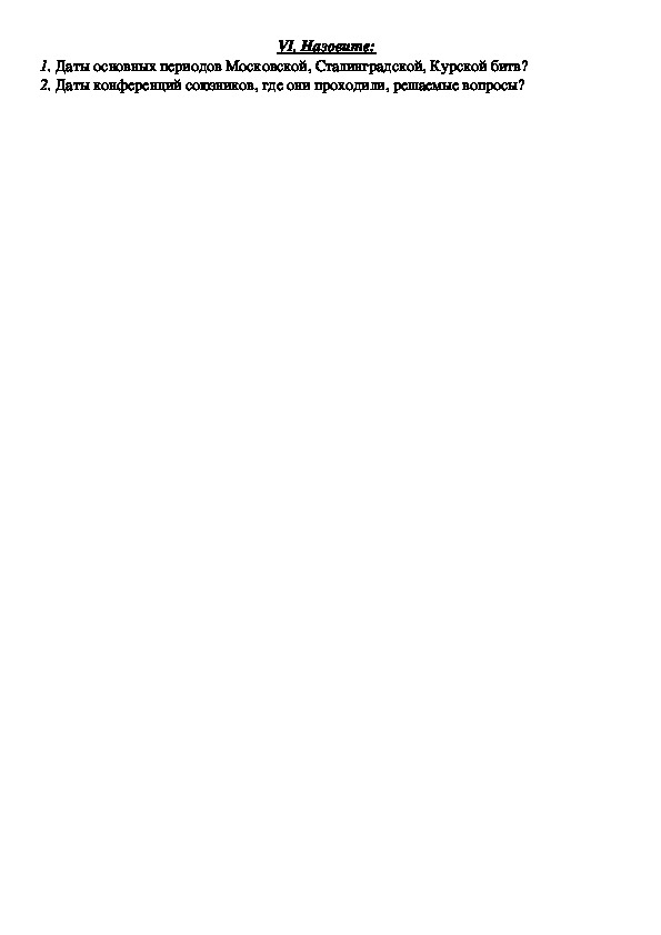 10. Водрузили Знамя Победы1. Даты основных периодов Московской, Сталинградской, Курской битв?