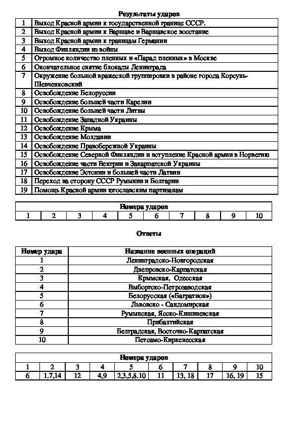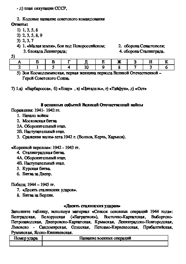 Тренинг по военным действиям в период Великой Отечественной войны. Предназначен для обучающихся 9 и 11 классов. Систематическое использование различных средств контроля. Совершенствование проверки знаний, умений, навыков учащихся непременное условие повышения эффективности урока. Одно из интересных форм организации коллективной, познавательной деятельности учащихся — тренинги. Они развивают активное сотрудничество школьников в их главном труде — учении. Кроме того, тренинги углубляют знания ребят по предмету, служат закреплением больших тем или наиболее сложных разделов курса истории.