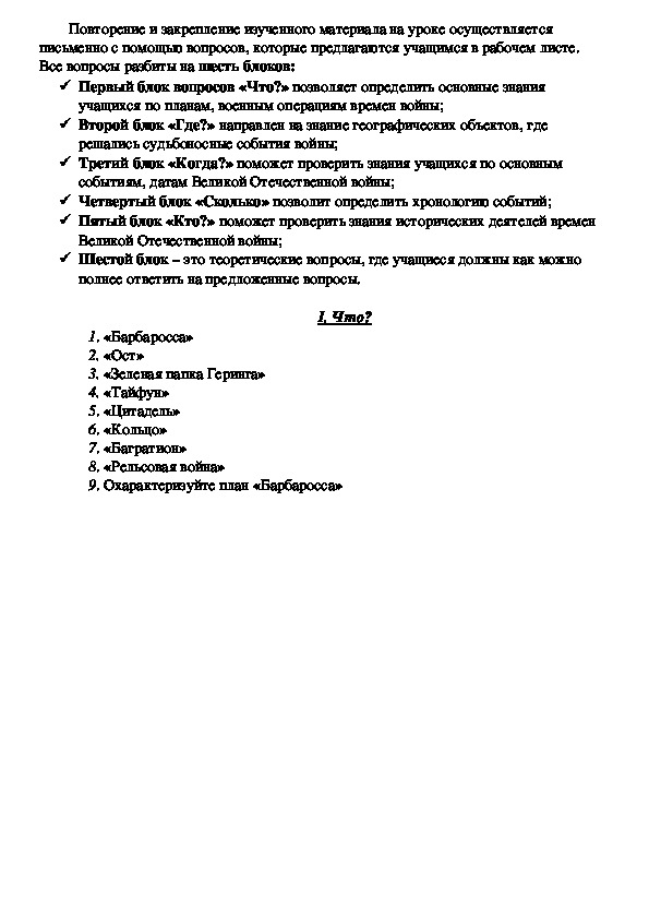 Первый блок вопросов «Что?» позволяет определить основные знания
